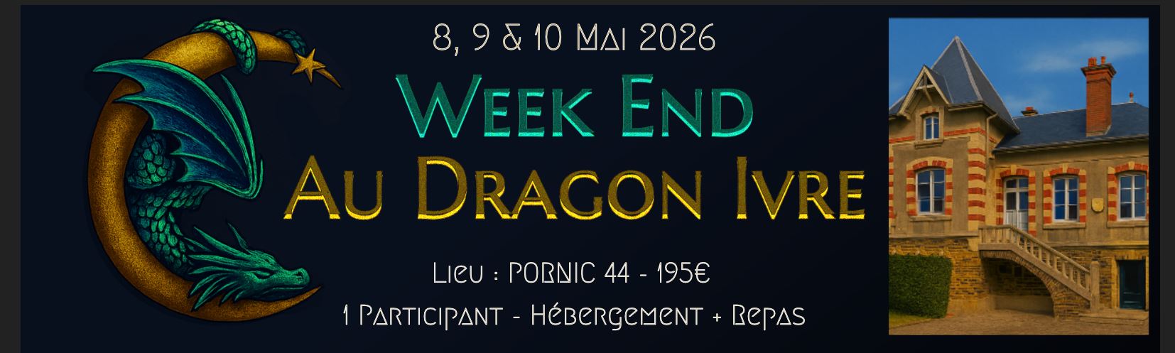 BILLET WEEK END AU DRAGON IVRE 8/9/10 MAI 2026 – 1 Personne – Hébergement + Repas